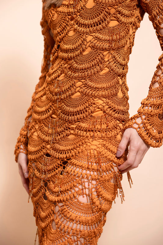 Pré vendaVESTIDO LONGO ANTONIA CROCHET LARANJA