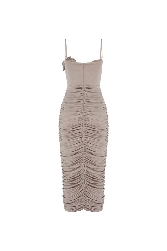 VESTIDO MÍDI PAETÊ CELESTIAL MARROM