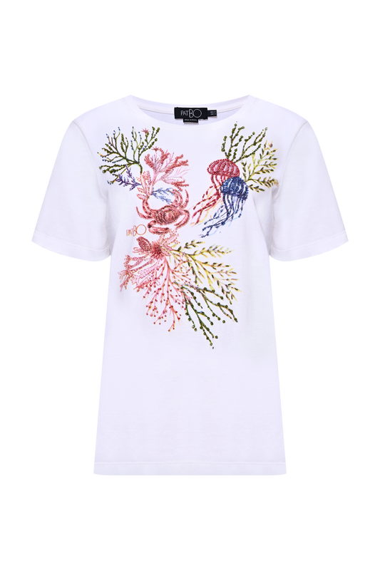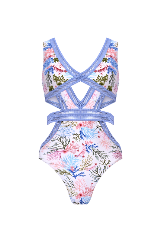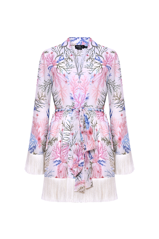 SAÍDA DE PRAIA LONGA SEAWEED OFF WHITE E ROSA