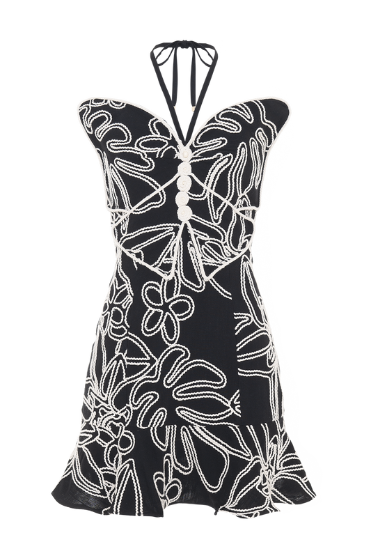 VESTIDO CURTO LINHO ASAS PRETO