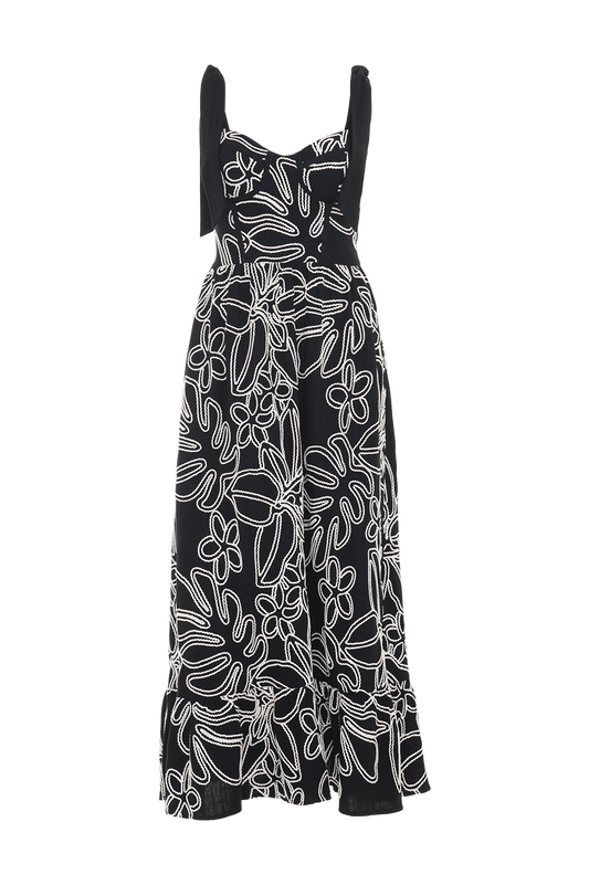 VESTIDO MIDI LINHO ASAS PRETO