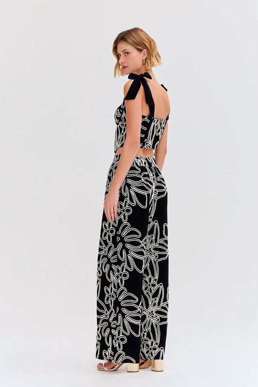 CALÇA AMPLA CHIFFON WONDERLAND PRETO