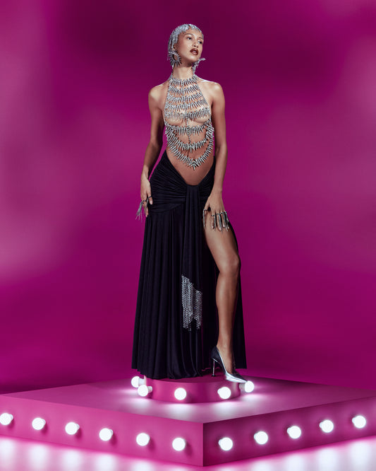 VESTIDO LONGO SEASHELL LYCRA PRETO