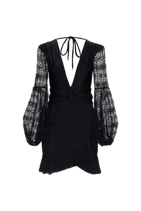 VESTIDO CURTO TELA RENDA SUNSET PRETO