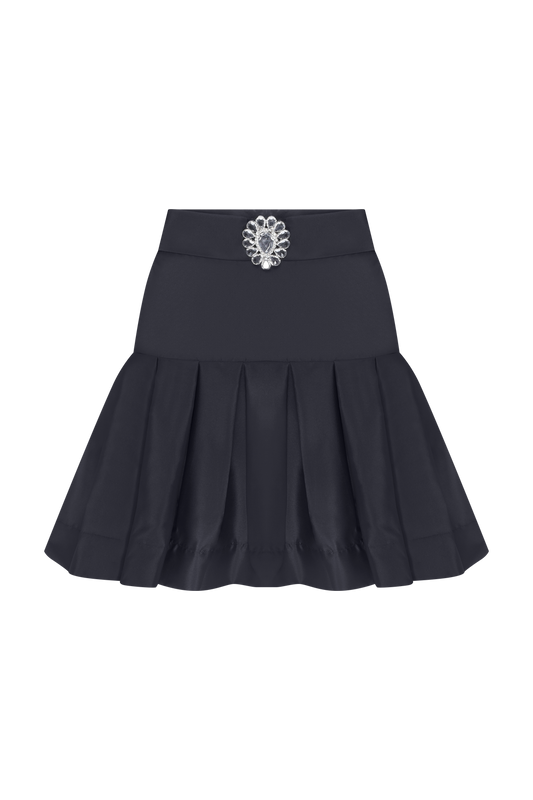 SAIA CURTA TAFETÁ BLOOM PRETO
