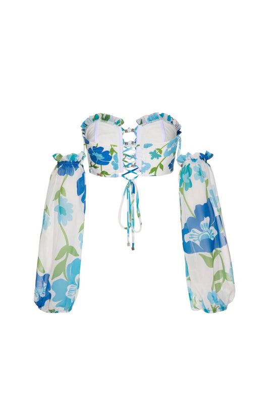 TOP BIQUÍNI MANGAS RETRÔ FLOWER OFF WHITE