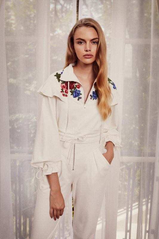 EsgotadoTOP BORDADO PALA MOLETOM OFF WHITE