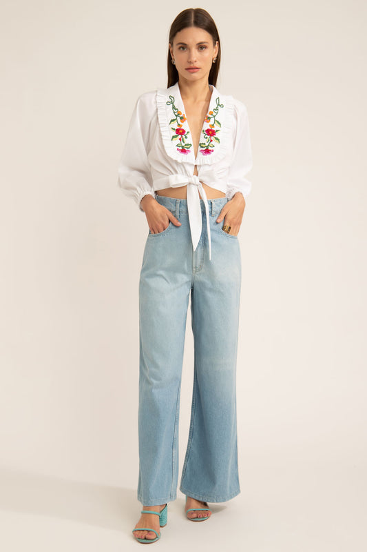 EsgotadoTOP BORDADO ESSENTIAL DENIM AZUL