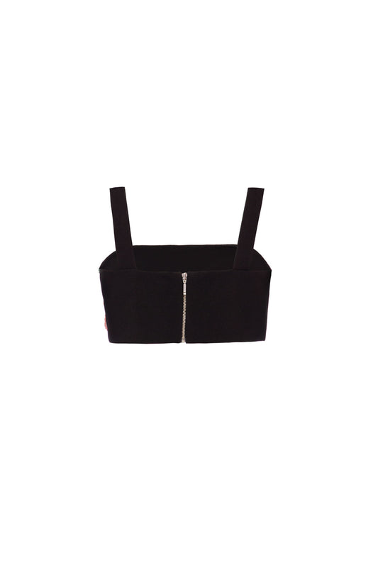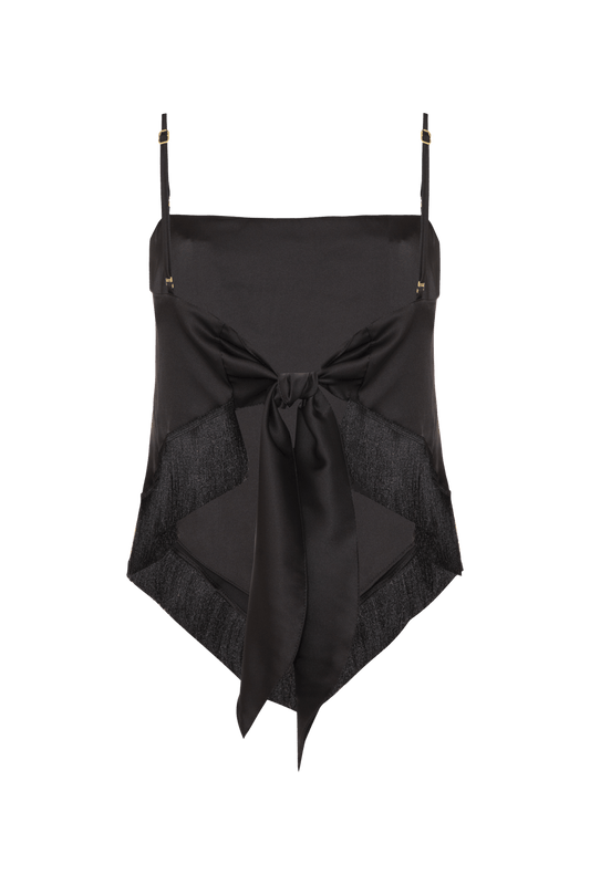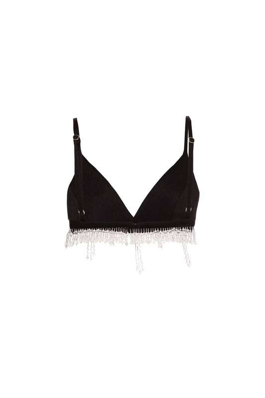 TOP BORDADO FRANJA CREPE CRYSTAL PRETO