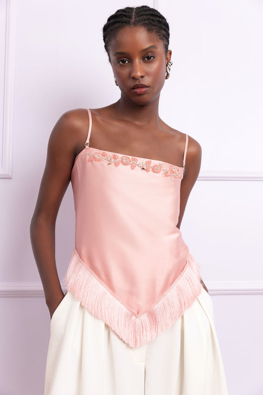 TOP BORDADO FRANJA CREPE CRYSTAL NUDE