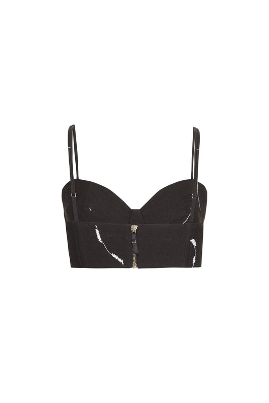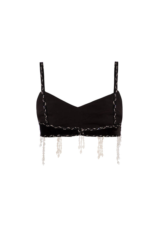 TOP CROPPED BORDADO VELUDO CRYSTAL PRETO