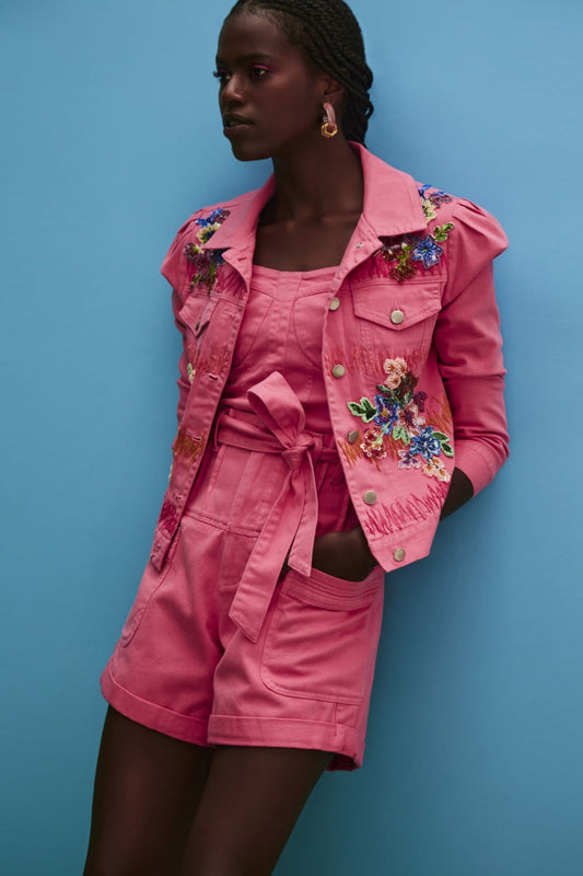 EsgotadoTOP CROPPED COLOR DENIM ROSA