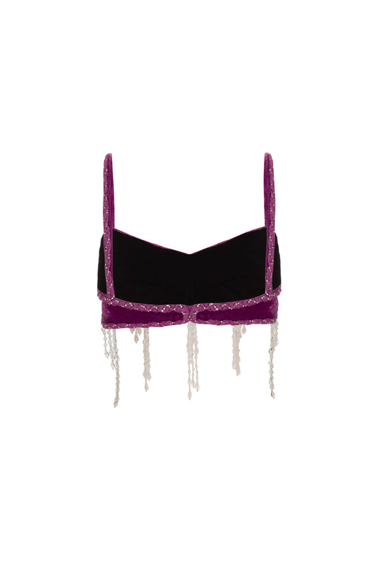 TOP CROPPED BORDADO VELUDO CRYSTAL ROXO