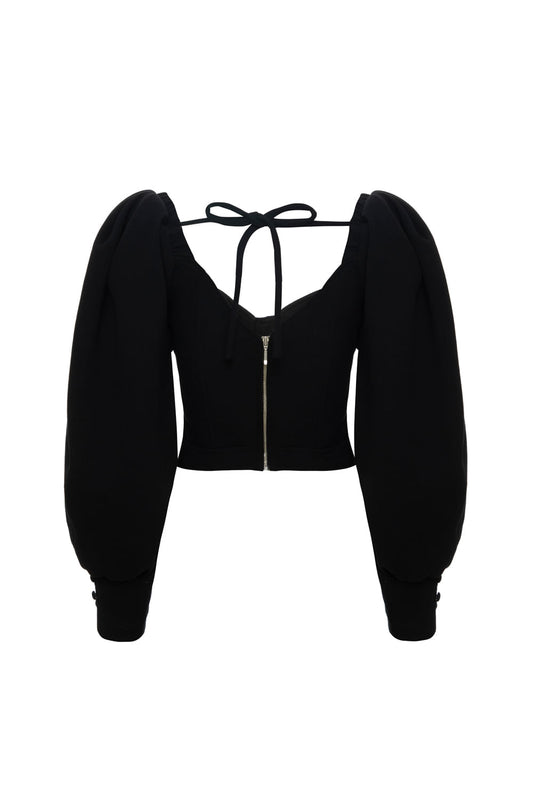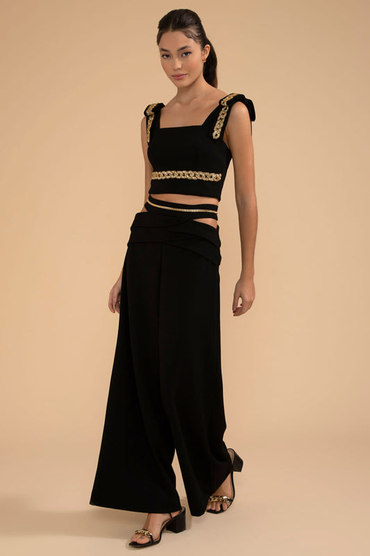 TOP CROPPED ENTREMEIO CREPE CHAIN PRETO