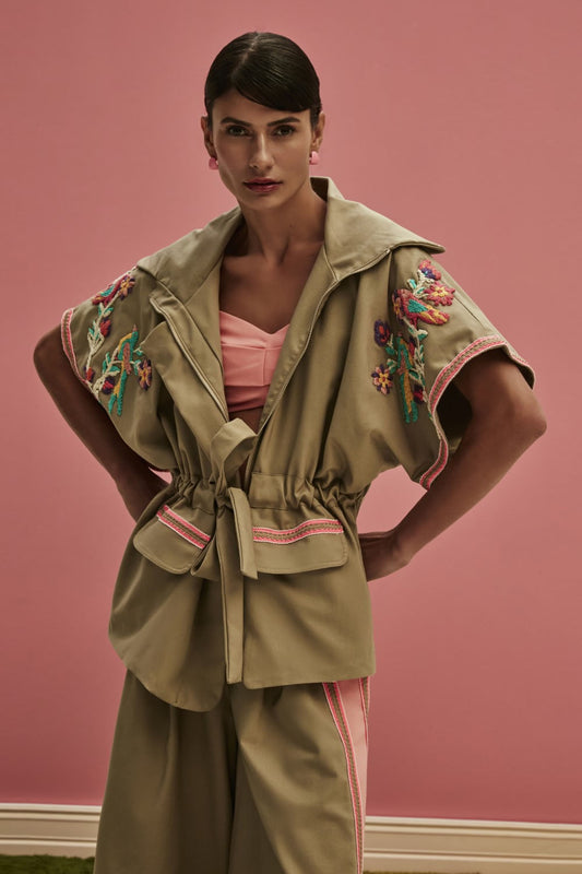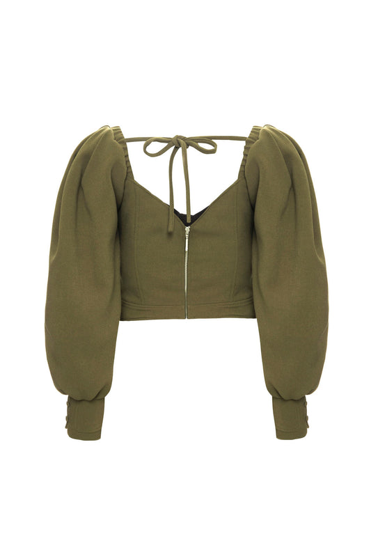 TOP CROPPED ENTREMEIO LINHO FRENCH VERDE