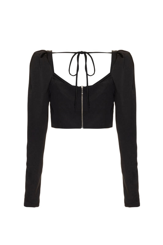 TOP CROPPED DRAPEADO CETIM RAMPLING PRETO