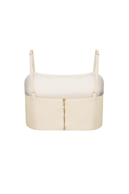 TOP CROPPED CRYSTAL EMBROIDERY BEGE