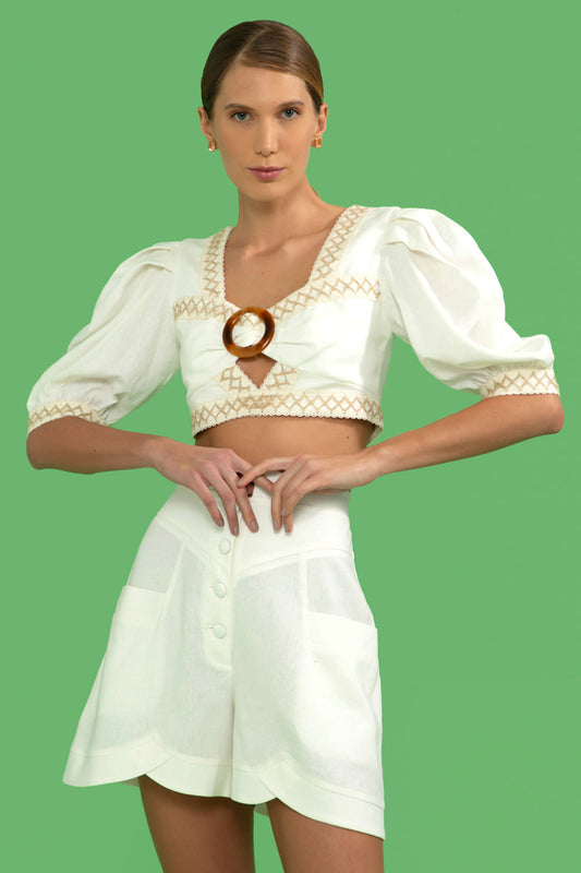 TOP CROPPED ENTREMEIO LINHO FRENCH OFF WHITE