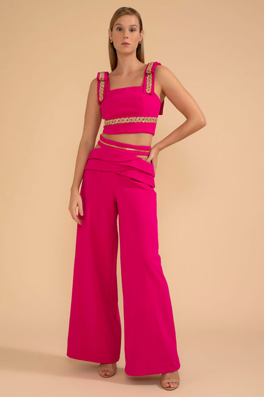 TOP CROPPED ENTREMEIO CREPE CHAIN PINK