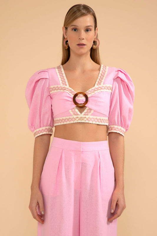 TOP CROPPED ENTREMEIO LINHO FRENCH ROSA