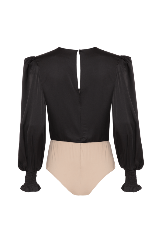 BODY DECOTE TRANSPASSADO LYCRA JACKIE PRETO COM OFF WHITE