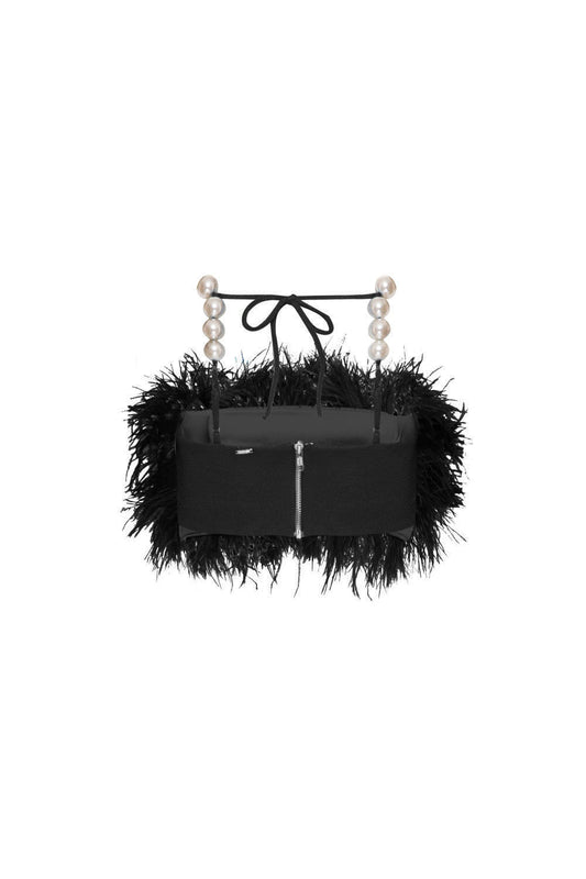 TOP CROPPED PLUMAS MALHA LUXOR SPY PRETO