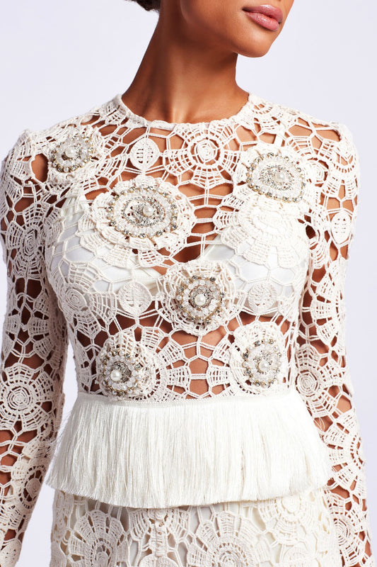 TOP CROPPED OMBRO ÚNICO BORDADO VAZADO OFF WHITE