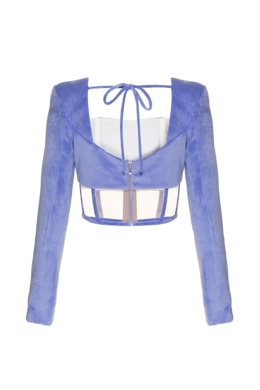 TOP CROPPED PLUMAS MALHA LUXOR SPY AZUL