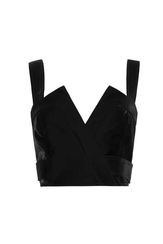 EsgotadoTOP CROPPED VELVET LEATHER PRETO