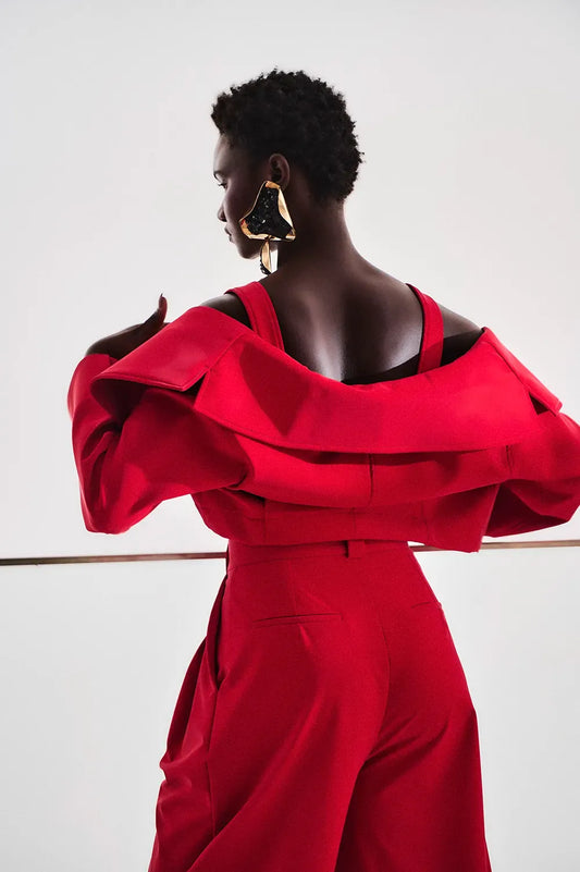 EsgotadoTOP CROPPED VELVET LEATHER VERMELHO