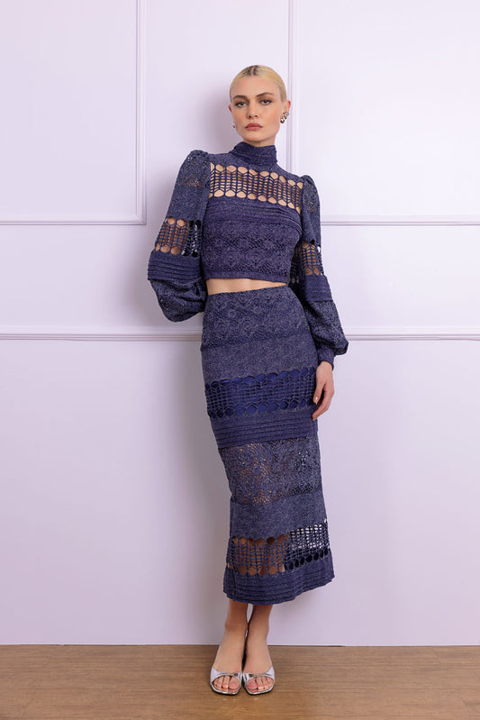 EsgotadoTOP CROPPED TELA FATE LACE MARINHO
