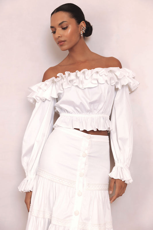 TOP CROPPED UM OMBRO SÓ ARTSY LILY OFF WHITE