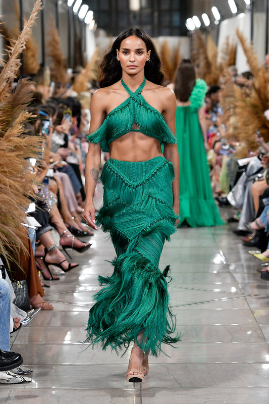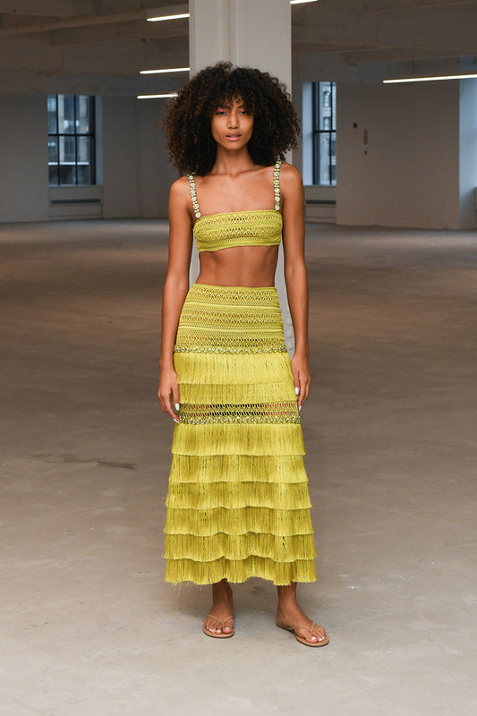 EsgotadoTOP CROPPED VIBRANT FRINGE VERDE