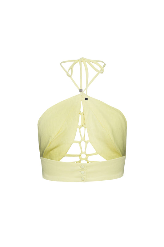 TOP CROPPED TIRAS LINHO BALNEÁRIO AMARELO