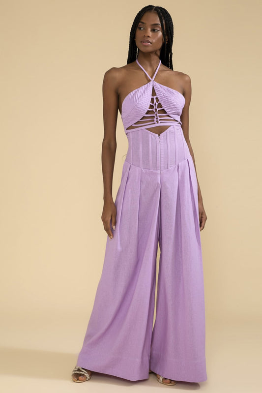 TOP CROPPED TIRAS LINHO BALNEÁRIO LILAS