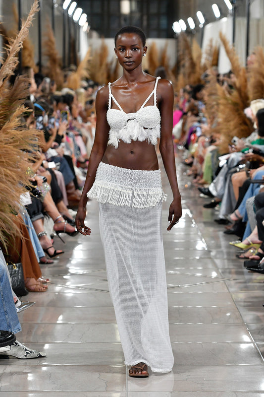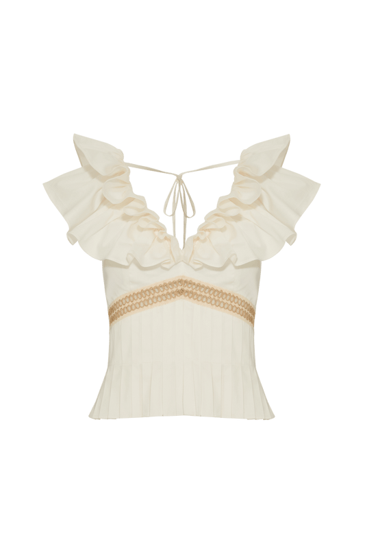 TOP PLUMAS TELA TROPICAL PEARL OFF WHITE
