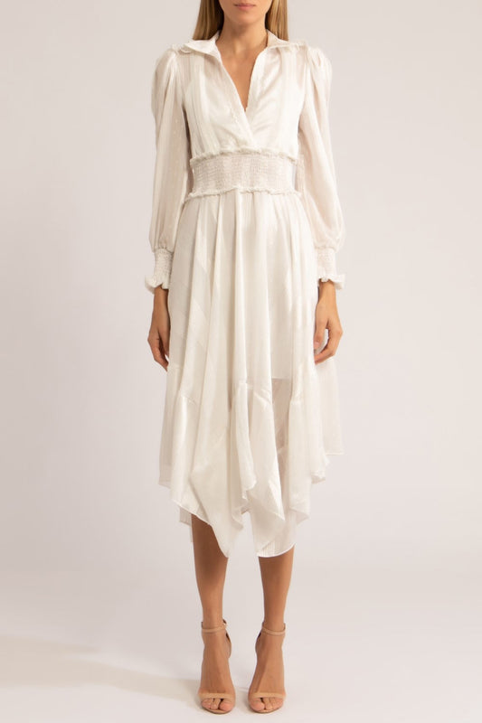 VESTIDO ASSIMÉTRICO SILKY DOTS OFF WHITE