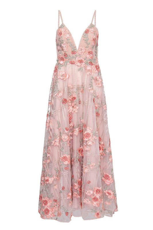 EsgotadoVESTIDO BORDADO FLORAL TULE ROSA