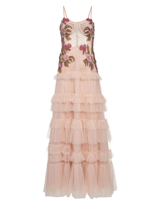 EsgotadoVESTIDO BORDADO CAMADAS TULE NUDE