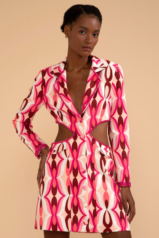 VESTIDO BLAZER CURTO RECORTES TWIST ROSA