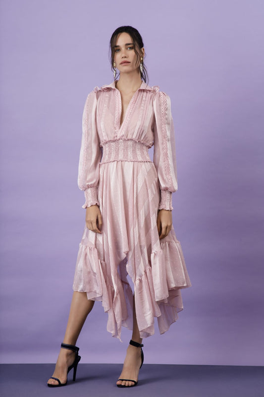 EsgotadoVESTIDO ASSIMÉTRICO SILKY DOTS PINK