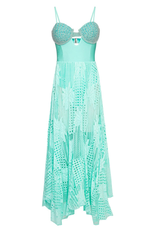 EsgotadoVESTIDO BUSTO BORDADO PÉROLAS AQUA