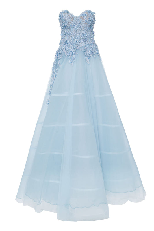 VESTIDO BUSTO BORDADO SAIA GODÊ AZUL CLARO