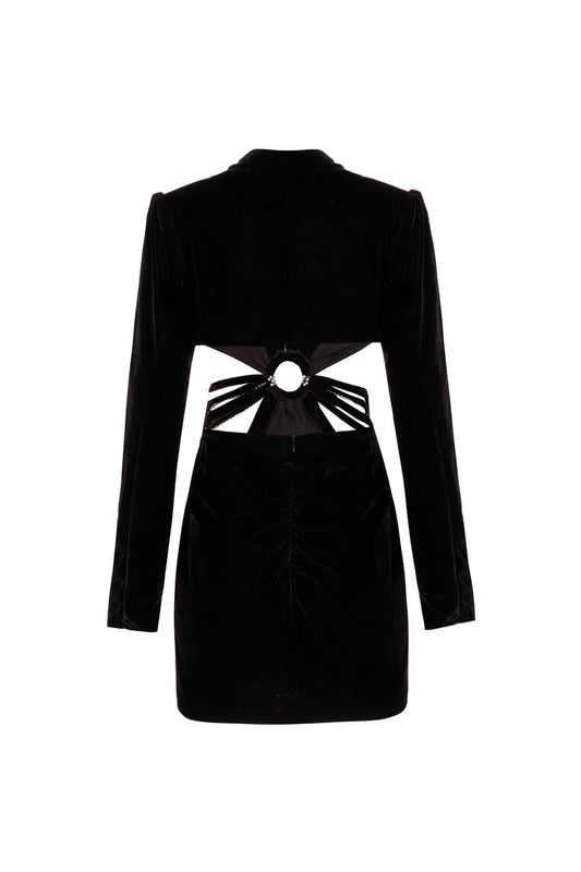 VESTIDO CURTO ARGOLA VELUDO CRYSTAL PRETO
