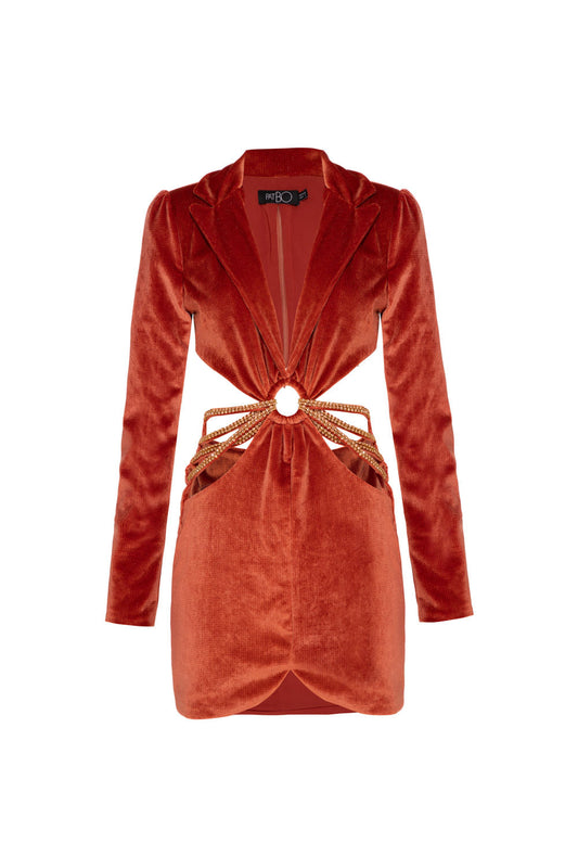 VESTIDO CURTO ARGOLA VELUDO CRYSTAL LARANJA
