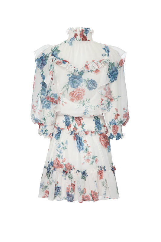 VESTIDO CURTO BABADO FLORAL OLGA OFF WHITE