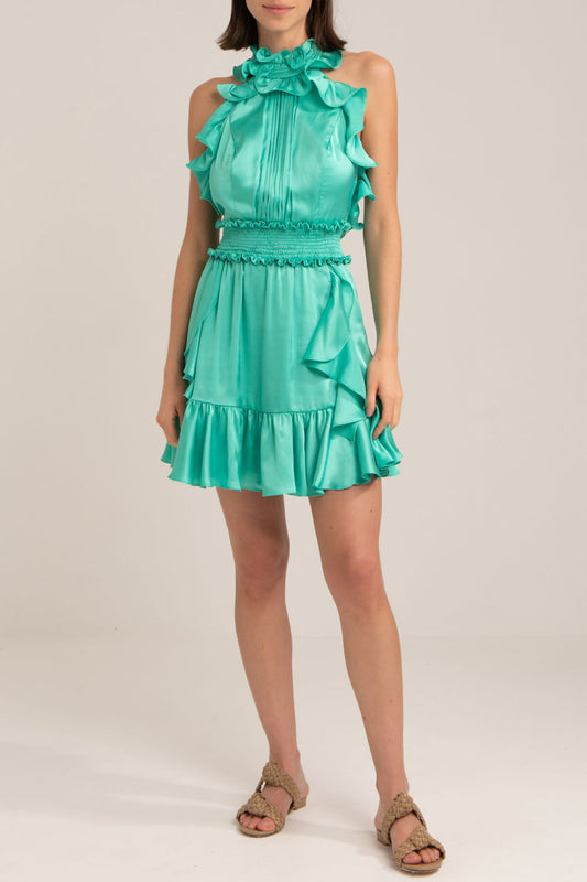 VESTIDO CURTO BABADOS CHIFFON TURNER VERDE