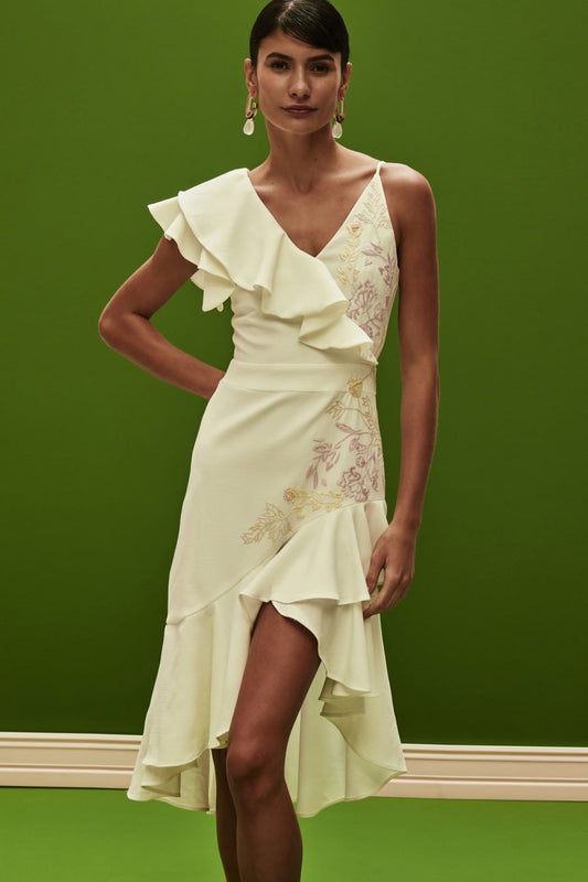 VESTIDO CURTO BABADO TROPICÁLIA OFF WHITE