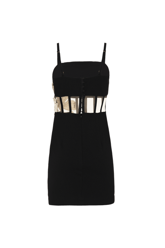 VESTIDO CURTO BICOLOR CREPE DAISY PRETO COM OFF WHITE