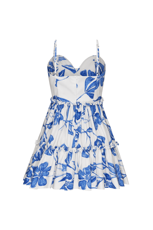 VESTIDO CURTO BABADO FLORAL OLGA AZUL